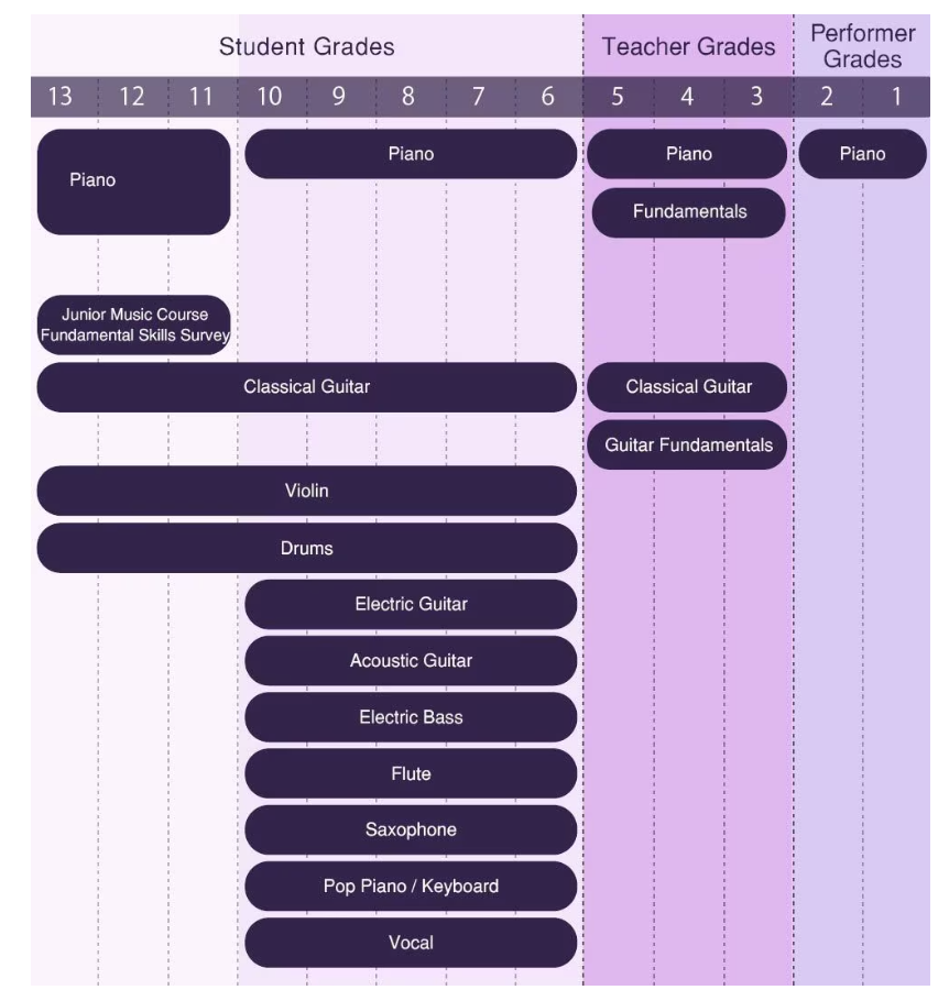 We have our own exam system so that students can document their progress in classes. The exams are carefully designed for the students' age and are offered upon request. For many of our students, these exams provide additional motivation to further develop their musical skills and abilities.